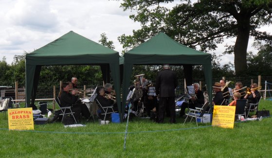 and on deck chairs. A lovely warm day at Battlefield 1403, part of the Albrighton Estate, just outside Shrewsbury. The Band was just one of the attractions there - Great fun. |